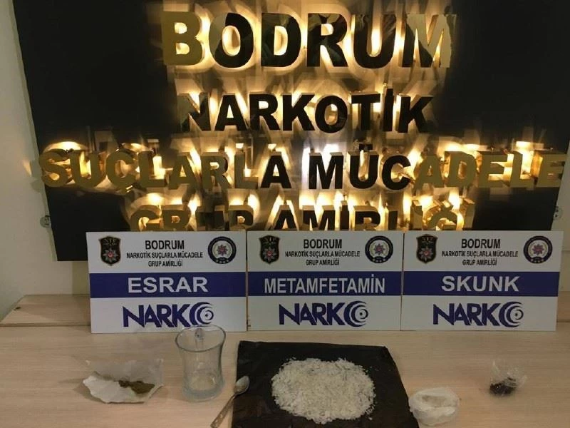 Ekipler, saha çalışmalarında uyuşturucu madde ticareti yaptığı bilgisi alınan M.A. isimli şahsın, kız arkadaşı E.Ş. ile birlikte kaldığı otel odasında Bodrum Cumhuriyet Başsavcılığı’nın koordinesinde arama gerçekleştirdi. Yapılan adli aramada 45 gram metamfetamin, daralı 3,5 gram metamfetamin, daralı 2 gram skunk ve 1 gram toz esrar ele geçirdi. 2 şüphelinin yanı sıra olay esnasında otel önünde araçta bekleyen ve şüphelilerle birlikte hareket ettiği değerlendirilen İ.Ö. isimli kişi gözaltına alındı.