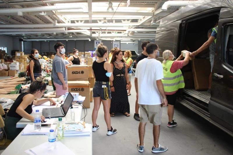 Muğla’nın Bodrum ilçesinde iki gün önce söndürülen yangında seferber olan vatandaşların gönderdiği yardım malzemeleri, Muğla’da 3 noktada devam eden yangınlar için gönderilmeye devam ediliyor.