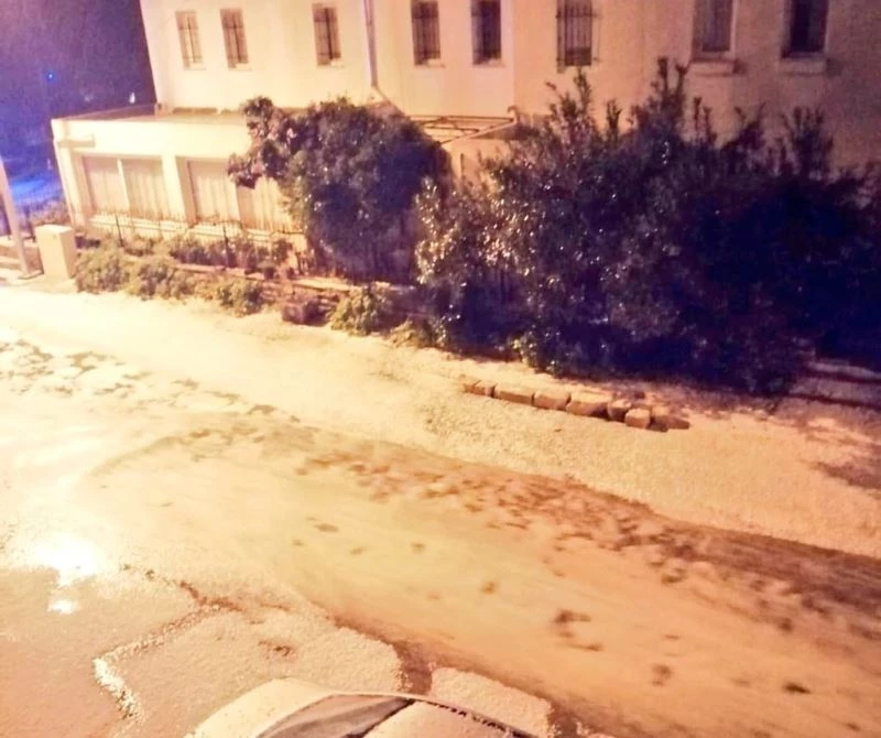 Muğla’nın Bodrum ilçesinde etkili olan dolu yerleri beyaza bürüdü. Sağanak yağış nedeniyle ev ve işyerlerini su bastı.