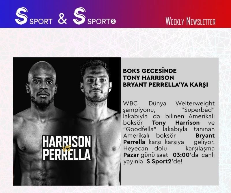 WBC Dünya Welterweight şampiyonu ’Superbad’ lakabıyla bilinen ABD’li boksör Tony Harrison ile ’Goodfella’ lakabıyla tanınan ABD’li boksör Bryant Perrella karşı karşıya gelecek. Heyecan dolu bu karşılaşma pazar günü saat 03.00’de canlı yayınla S Sport2’den yayınlanacak.
