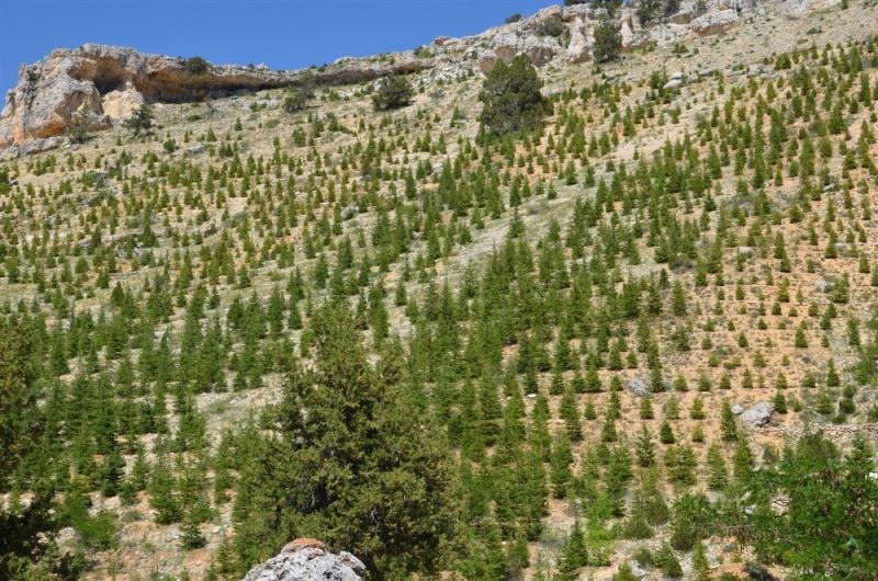Erdemli Orman İşletme Müdürlüğü sınırlarında kalan 2011 ile 2016 yılları arasında tesis edilmiş sahalar gezilirken, Hacıalanı, Gavuruçtuğu ve özellikle Ünlük Tepe mevkinde 2 bin 200 metre rakımda yapılan çalışmaların başarılı ifade edildi.