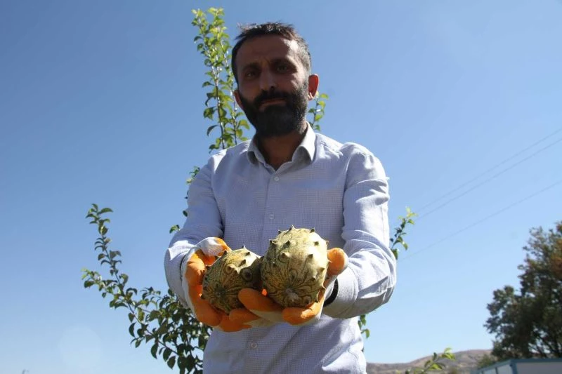 Bölgede ilki başardı, tropik Afrika meyvesi olan Kivano’yu yetiştirdi, bir kökte 50 adet ürün elde etti