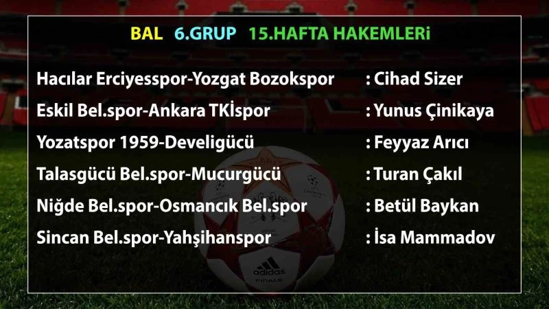 Bölgesel Amatör Lig (BAL) 6. Grup’ta 15. hafta maçlarını yönetecek hakemler belli oldu.