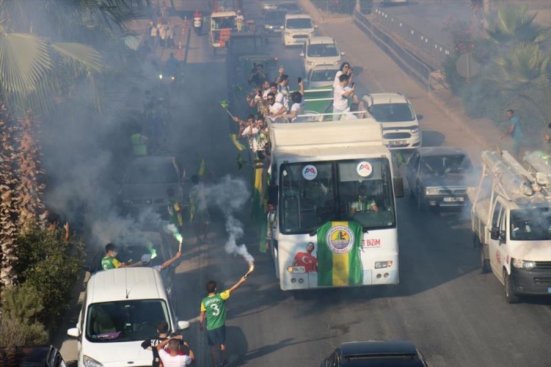 MERSIN (AA) - Mersin'de, Bölgesel Amatör Ligi'ne (BAL) yükselen Erdemli Belediyespor'un taraftarlari, traktörleriyle konvoy yapti.