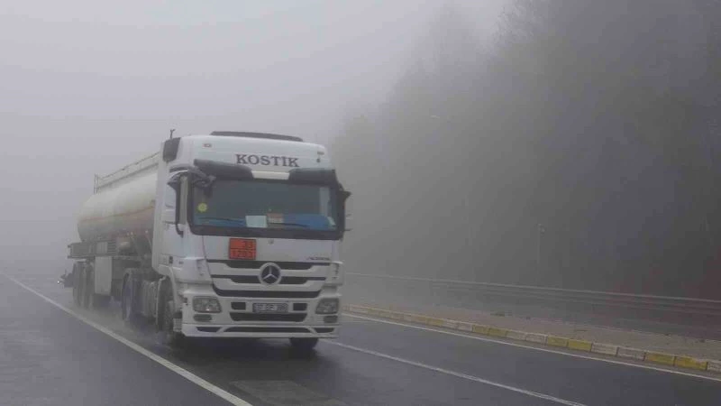 Bolu Dağı’nda etkili olan yoğun sis sebebiyle görüş mesafesi yer yer 20 metreye kadar düştü.
