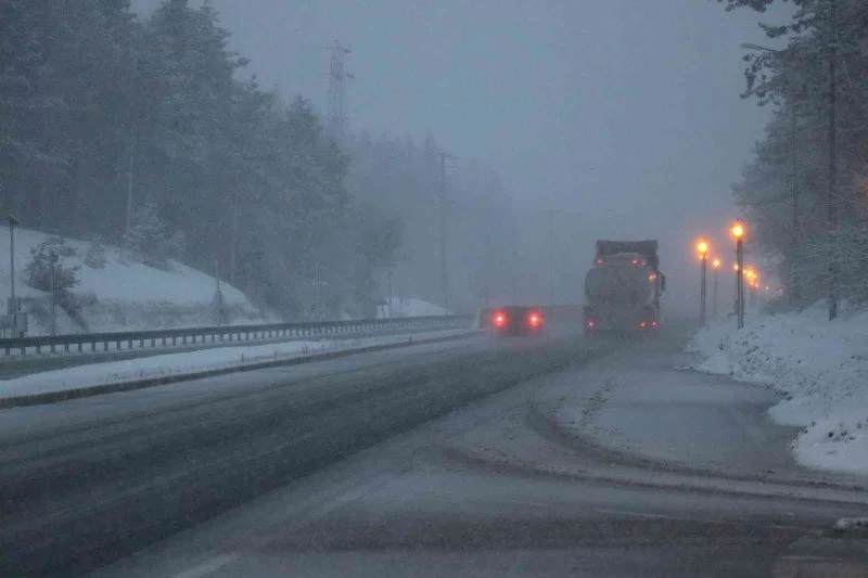 Bolu’da, D100 karayolu Bolu Dağı geçişinde akşam saatlerinde başlayan kar yağışı etkisini sürdürürken, sis sebebiyle görüş mesafesi yer yer 30 metreye kadar düştü.