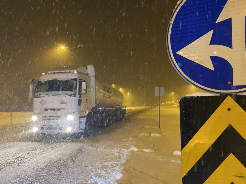 Bolu Dağı’nın D-100 karayolu geçişinde şiddetli kar yağışı etkili olmaya başladı. Yol beyaza bürünürken Karayolları ekipleri, kar küreme ve tuzlama çalışması yapıyor.