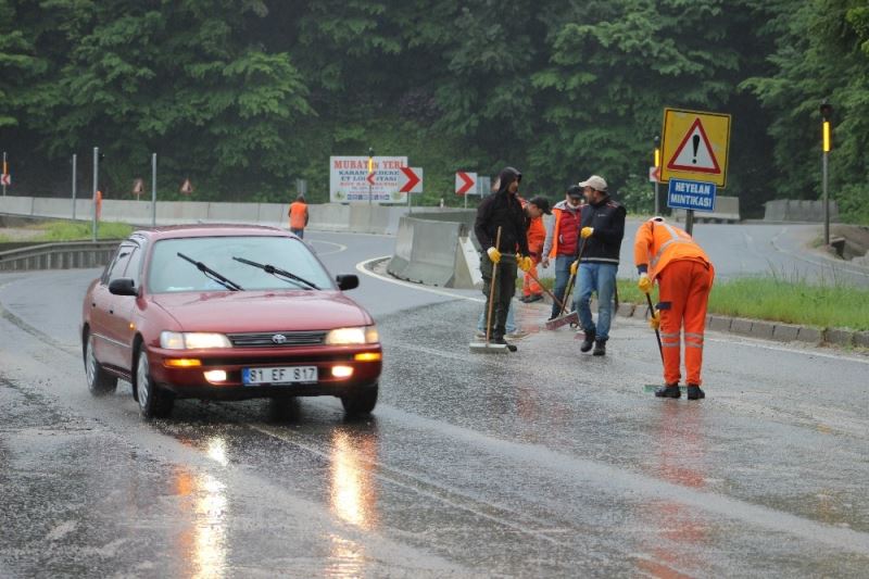 Bolu Dağı’nın D-100 karayolu kesiminde etkili olan sis nedeniyle ulaşımda aksamalar yaşanıyor. D-100 karayolu Bolu Dağı geçişinin, Düzce ve Bolu kesimlerinde etkili olan yoğun yağmur ve sis nedeniyle görüş mesafesi yer yer 10 metreye kadar düştü. Karayolunun özellikle Düzce kesiminde bulunan Bakacak, Karanlıkdere, Taşaltı, Bıçkıyanı ve Sarıçökek mevkileriyle Bolu kesimindeki Seymenler, Elmalık ve Köroğlu mevkilerinde etkisini gösteren yoğun sis nedeniyle araçlar zaman zaman ilerlemekte güçlük çekiyor. Görüş mesafesinin yer yer 10 metreye kadar düştüğü Bolu Dağı’nda polis ve karayolları ekipleri, trafikte herhangi bir aksaklık yaşanmaması için yoğun güvenlik önlemleri alıyor. Ekipler sürücüleri yakın takip ve aşırı hız konusunda uyarıyor.