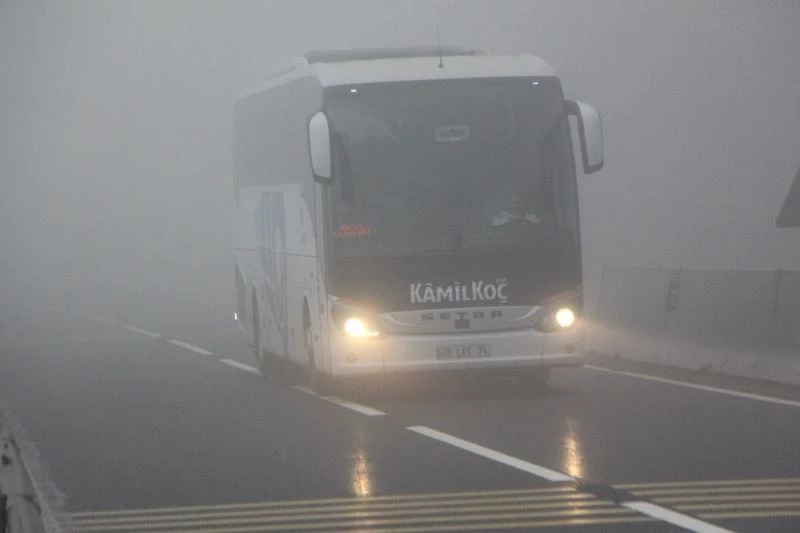 Sis nedeniyle görüş mesafesinin yer yer 20 metreye kadar düştüğü Bolu Dağı’nda sürücüler takip mesafelerini korumaları ve hız yapmamaları konusunda ışıklı tabelalar ve polis ekipleri tarafından uyarılıyor.