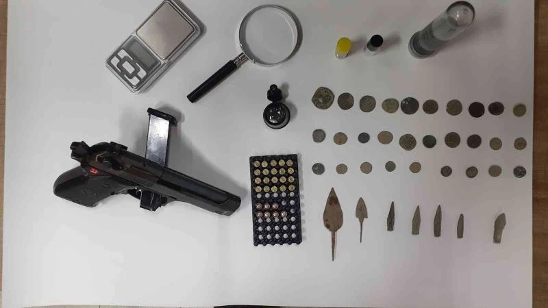Ekipler, tespit edilen 6 adrese eş zamanlı operasyon düzenledi. Operasyon kapsamında T.Ç. (42) isimli şahsın evinde 29 tarihi eser olduğu değerlendirilen sikke, 7 tarihi eser olduğu değerlendirilen ok ucu, 3 cam tüp içerisinde bir miktar civa maddesi, 1 hassas terazi, 2 büyüteç, 1 kuru sıkı tabanca ve 27 kuru sıkı fişek ele geçirildi.