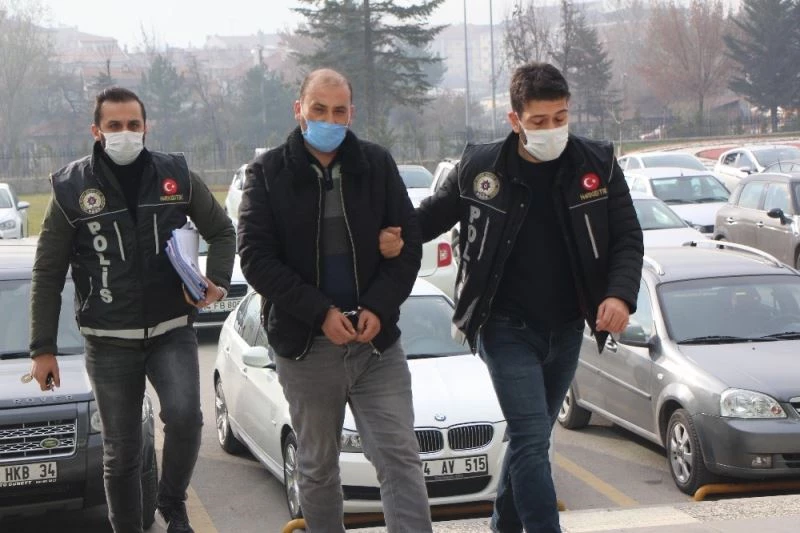 Bolu’da narkotik ekiplerinin TEM Otoyolu’nda yaptıkları uyuşturucu operasyonunda 1 kilo 900 gram esrarla yakalanarak gözaltına alınan şahıs, adliyeye sevk edildi.