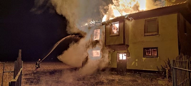 Bolu’nun Dörtdivan ilçesinde çıkan yangında 2 katlı ahşap ev ve ahır alev alev yanarak kullanılamaz hale geldi.