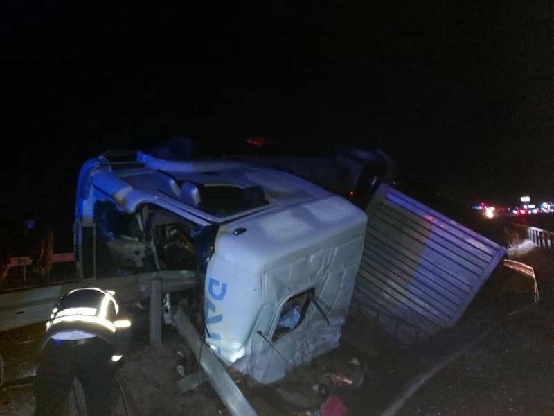 Bolu’da bariyerlere çarpan balık yüklü tır devrildi: 1 yaralı