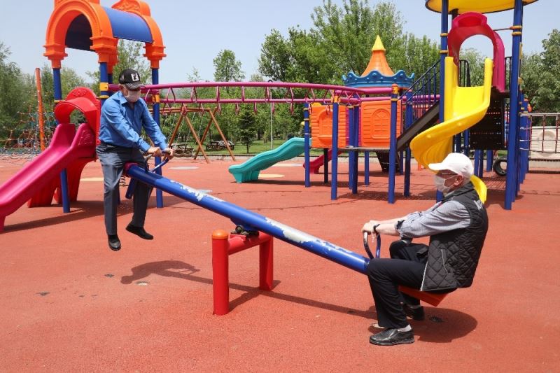 Bolu’da çocuk parkına giden yaşlılar tahterevalliye bindi