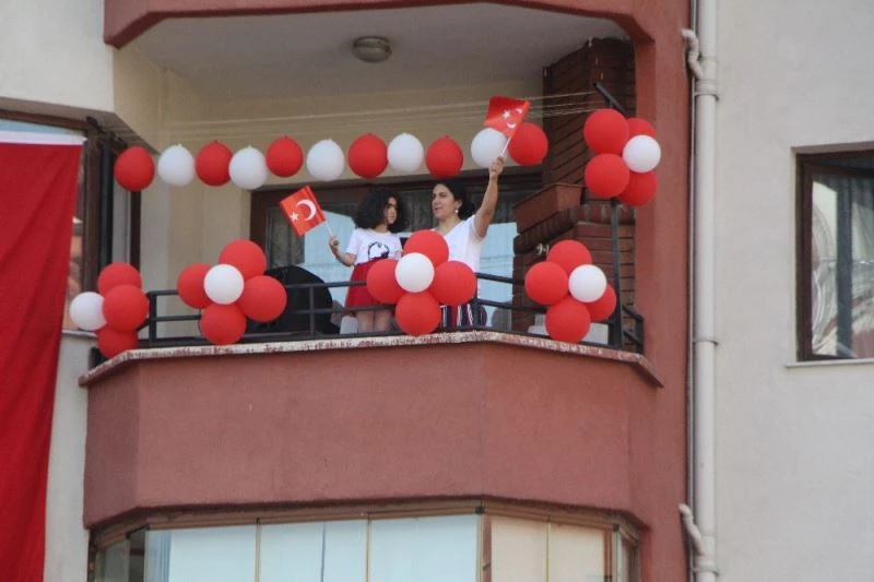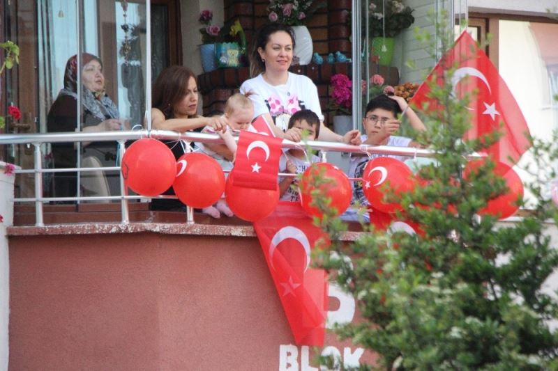 Bolu’da 19 Mayıs Atatürk’ü Anma, Gençlik ve Spor Bayramı’nda Türk bayraklarıyla donatılan bir sitede vatandaşlar müzik eşliğinde spor yaptı.