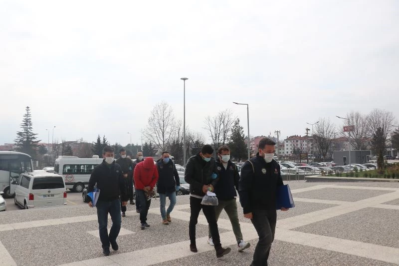 İfadeleri alınmak üzere emniyet müdürlüğüne götürülen 6 şüpheli işlemlerinin ardından adliyeye sevk edildi.