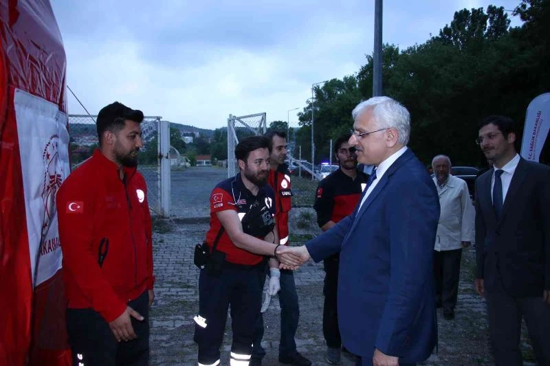 Tatbikat alanını ziyaret eden Bolu Valisi Erkan Kılıç, “Allah inşallah bizi afetlere maruz bırakmaz. Afet meydana geldiği zaman en az can ve mal kaybıyla çıkmak önemli. UMKE’de bu kapsamda yaralılarımızın kurtarılması konusunda çok önemli görevler ifa ediyor” dedi.