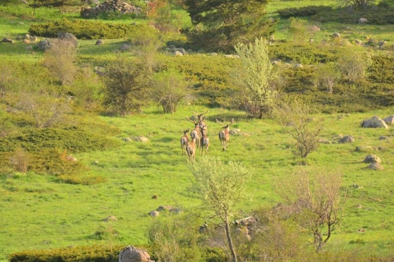 Bolu’da geyik sürüsü doğal yaşamlarında görüntülendi