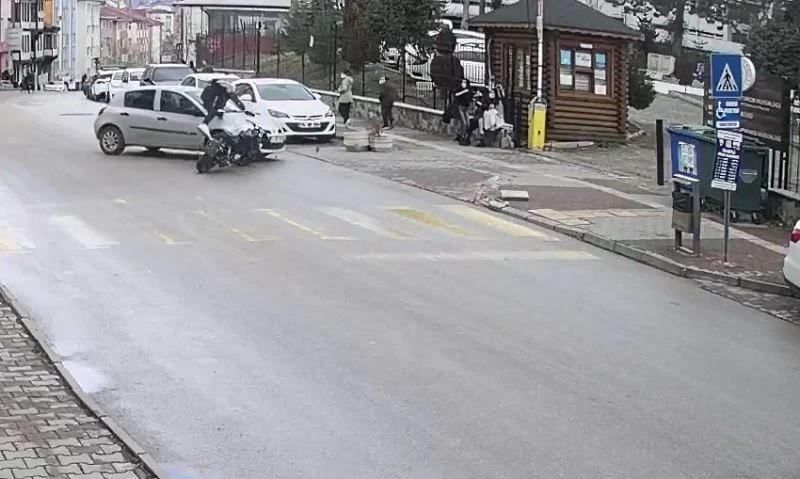 Bolu’da motosikletin otomobile çarpma anı güvenlik kamerasında
