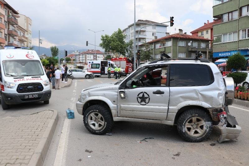 Bolu’da kavşak üzerinde otomobille çarpıştıktan sonra takla atan cipin sürücüsü kazadan hafif yaralı kurtuldu.