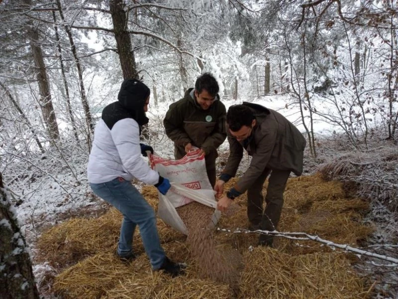 Bolu’da yaban hayvanları için ormanlara yem bırakıldı