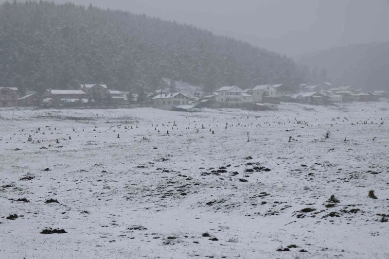 Bolu’nun yüksek kesimlerinde gece saatlerinde başlayan ve etkili olan kar yağışıyla birlikte yeşil alanlar beyaz örtüyle kaplandı.