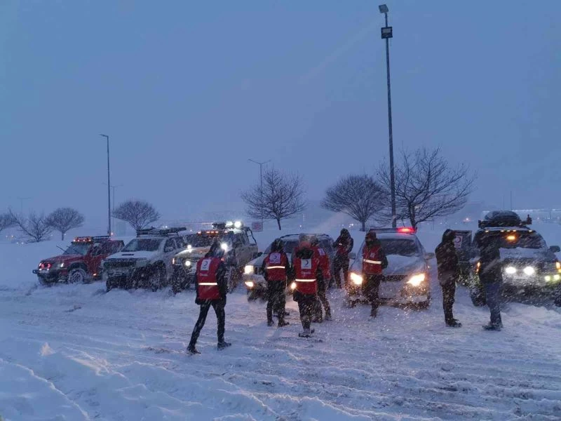 Bolu’da, yoğun kar yağışı sebebiyle D100 Karayolu Bolu Dağı geçişi araç trafiğine kapatılırken, TEM Otoyolu’nda kısmi kapanma dolayısıyla uzun araç kuyrukları oluştu. Araçların saatlerce yolun açılmasını bekleyen vatandaşların yardımına Kızılay ekipleri yetişti.