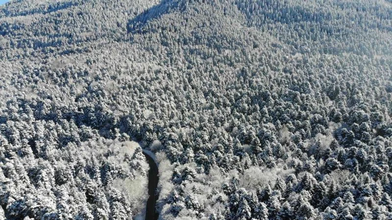 Bolu’nun karla kaplı ormanları havadan görüntülendi