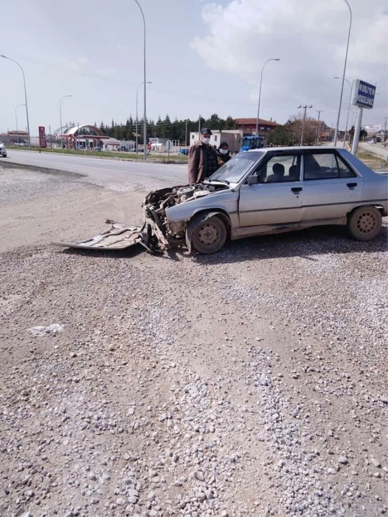 Afyonkarahisar’ın Bolvadin ilçesinde meydana gelen trafik kazasında çarpışan iki otomobilden birisi savrularak yol kenarındaki binanın duvarına çarparak durabildi. Kazada iki kişi yaralandı.