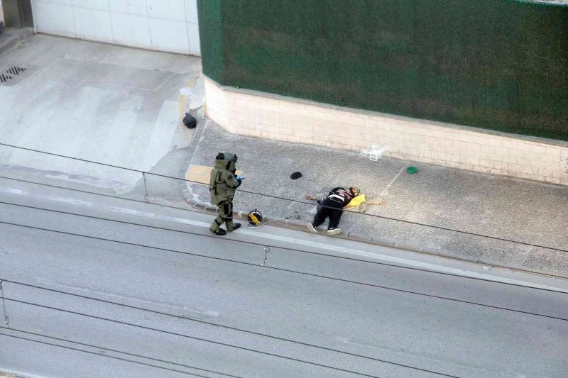 Gaziantep’te Emniyet Müdürlüğünün önüne gelerek, ’üzerimde bomba var’ diyen şahıs polis tarafından vurularak etkisiz hale getirilirdi. Olayın ardından özel kıyafetlerini giyen bomba imha ekipleri şahsın üzerinde bomba araması yaptı. Üzerinde kablo tespit eden bomba imha ekipleri incelemesini sürdürüyor. Şahsın bıraktığı poşetin ise fünye ile patlatılması bekleniyor.