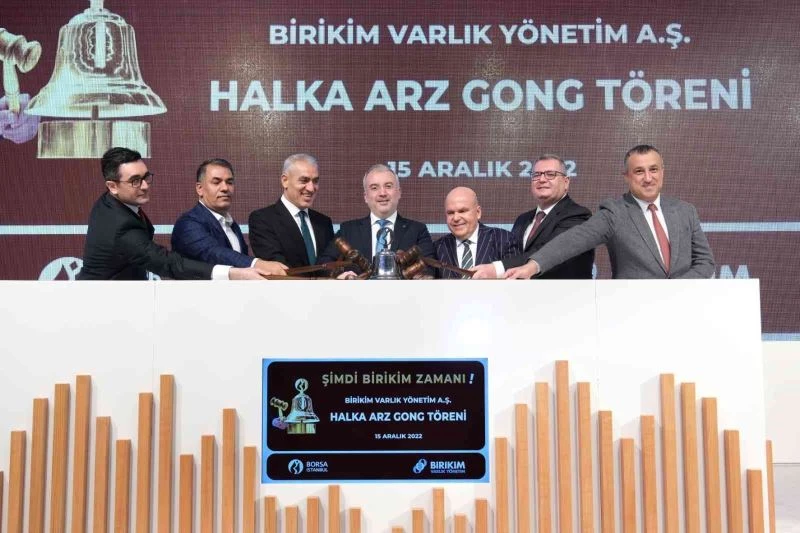 Borsa İstanbul A.Ş Genel Müdürü Korkmaz Ergun, Birikim Varlık Yönetim A.Ş. Yönetim Kurulu Başkanı İnan Altınbaş, Birikim Varlık Yönetim A.Ş. Genel Müdürü ve Yönetim Kurulu Üyesi Fahrettin Özyapar ve finans sektörünün temsilcilerin katılımıyla, 15 Aralık Perşembe günü düzenlenen halka arz gong törenin ardından, Birikim Varlık Yönetim AŞ hisseleri, Borsa İstanbul Ana Pazar’da BRKVY koduyla işlem görmeye başladı.