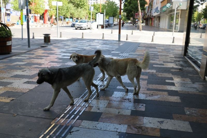 Kahramanmaraş’ta sokağa çıkma kısıtlaması nedeniyle boş kalan cadde ve sokaklar köpeklere kaldı.