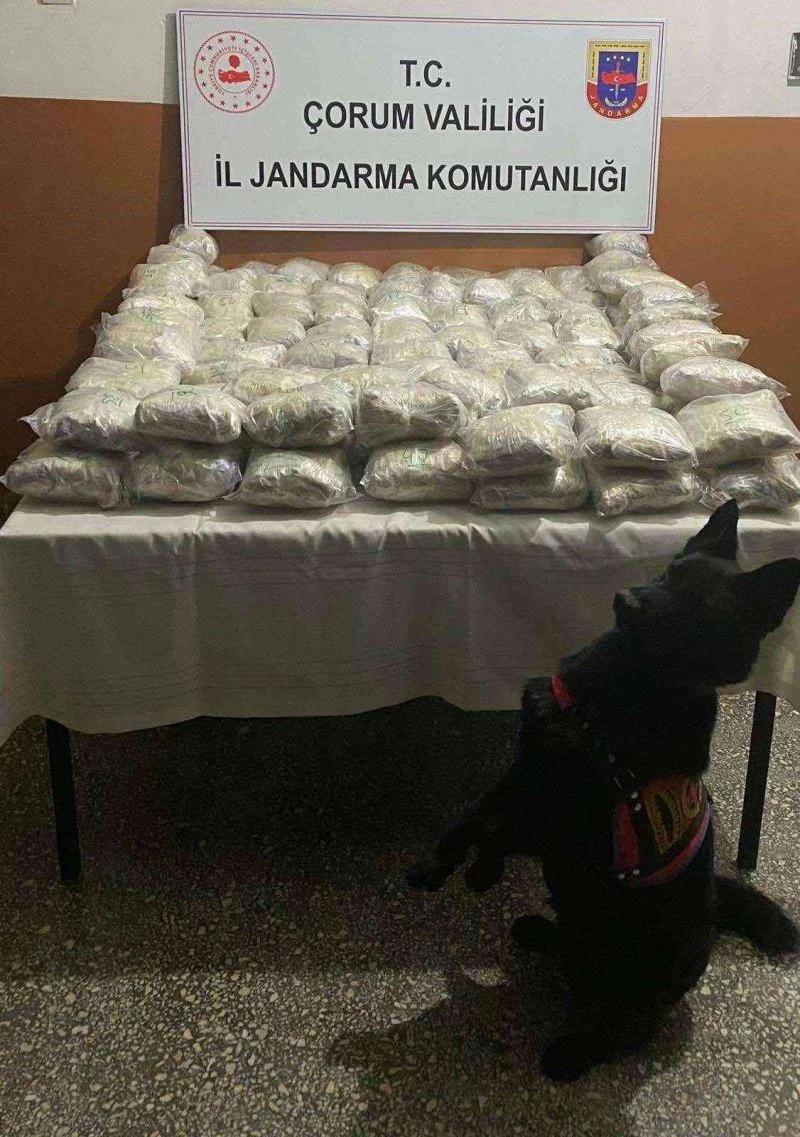 Çorum’da jandarma ekiplerinin şüphe üzerine durdurduğu boş yolcu otobüsünde 110 kilo eroin ele geçirildi.