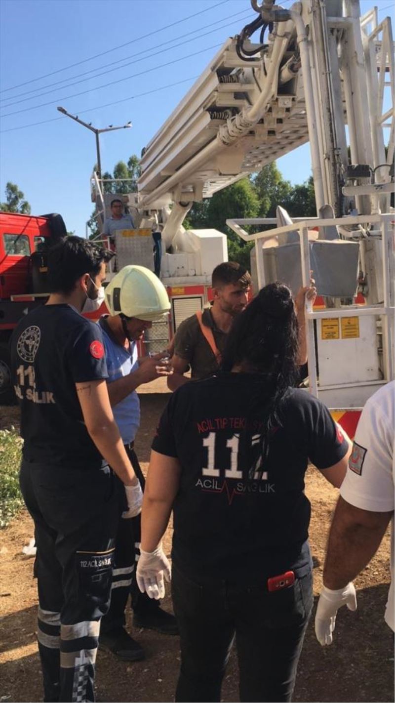MERSIN (AA) - Mersin'de 8 katli binanin dis cephesini boyarken bastigi tahtanin devrilmesi sonucu iskelede asili kalan isçi itfaiye ekiplerince kurtarildi.