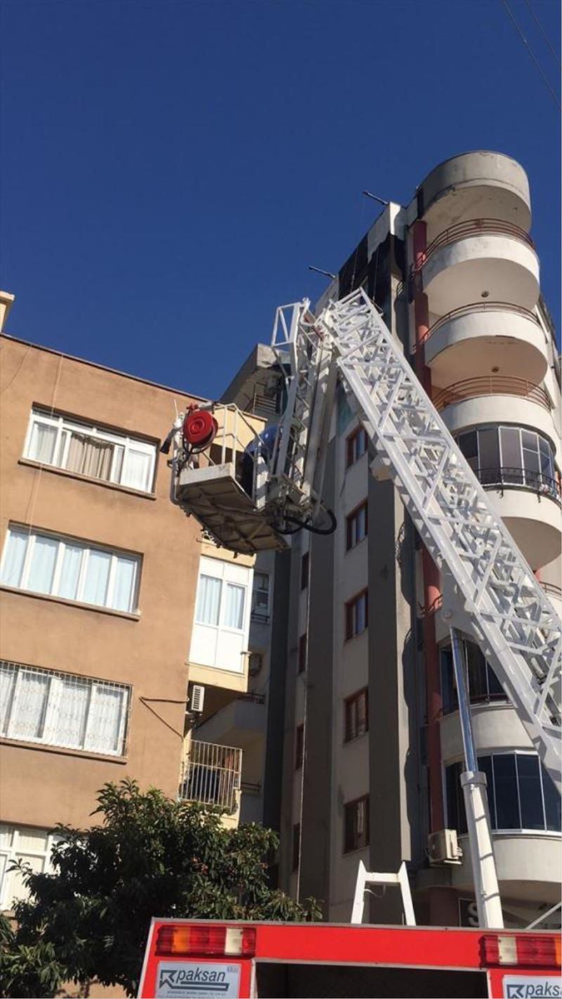 Tarsus ilçesi Yavuz Donat Bulvari'ndaki binanin dis cephesini boyayan Mehmet Kildin, iskelede bastigi tahtanin devrilmesi sonucu 7. kattan düsme tehlikesi geçirdi.