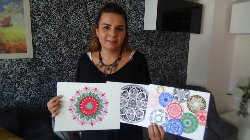 Denizli’de üç çocuk annesi 38 yaşındaki Seher Uruç, 2017 yılında boyama yaparak başladığı Mandala sanatına 2019 yılından bu yana çizim yaparak devam ediyor. Mandala da eğitmenlik eğitimini de alan Uruç, üç farklı grupta, farklı seanslarda mandala kursu açarak sanatçılar yetiştirmeyi planlıyor. Her çizginin, kullanılan her rengin, yapılan boyamanın bir anlamının olduğu mandala sanatında bir eser iki gün ile bir hafta üzerinde çalışıldıktan sonra tamamlanabiliyor. Türkiye’de çok bilinmese de, Denizli’de tek mandala sanatçısı ve eğitmeni olsa da, mandala sanatının 40 bin yıllık geçmişinin olduğunu anlatan Uruç, “2017 yılından bu yana mandalayla ilgileniyorum. 2019 yılından bu yana da mandalanın çizimini yapıyorum. Mandala aslında daire çember anlamına gelen bir kelime. Kırk bin yıllık bir tarihi var ama yeni yeni biliniyor. Batıda çok ünlü olmasına rağmen Türkiye’de daha yeni yeni bilinen bir sanat. Mandalanın pisikoloji açısından birçok eğitimlerini vermiş insanlar var. Psikoloji anlamında bunu kullanan birçok insan var aslında yurt dışı olarak, ama Türkiye’de bu çok fazla bilinen bir sanat değil. Aslında çember anlamında bütünün birde toplanması anlamına gelen bir kelime” dedi.