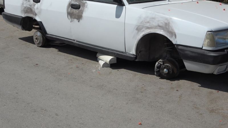 Denizli’de hırsızlar, gece saatlerinde park halindeki otomobilin 4 tekerliğini çaldı. Sabah işe gitmek için otomobilin yanına gelen Ömer A. 4 lastiğinin olmadığını, otomobilin taş ve tahtlar üzerinde durduğunu görünce neye uğradığına şaşırdı.