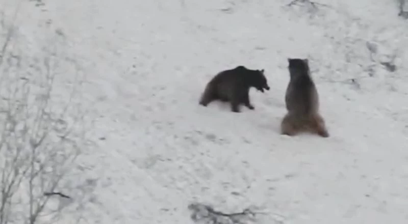Tunceli’de karda kayak yaparak oyun oynayan bozayıların o anları, doğa fotoğrafçısı tarafından kaydedildi.