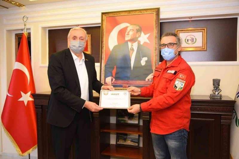 AKUT Bozüyük Ekip Lideri Yardımcısı Serdar Çaldemir ve AKUT Gönüllüleri Bozüyük Belediye Başkanı Mehmet Talat Bakkalcıoğlu’nu ziyaret etti.