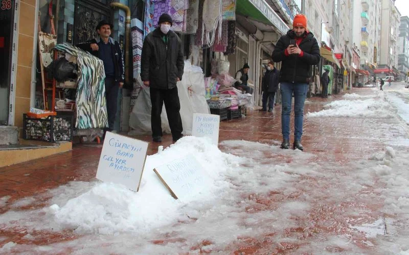 Samsun’da dün geceden beri etkili olan kar yağışı sonrası şehir merkezinde yer yer kar kalınlığı 15 santimetreyi buldu. Şehri beyaza bürüyen kar yağışı kimine çile kimine eğlence oldu. Bu sefer karın tadını çıkaranlarsa gençler değil esnaf oldu. Can sıkıntısından kardan mezar yapan esnaf, mezar taşınaysa “İyi adamdı kaydı öldü”, “Gülmeyin bana, gel yer ayırdım sana”, “Ruhuna bir Fatiha da sen oku” diye yazılar yazdı. Kardan mezarın üzerine de bir bıçak koydu.
