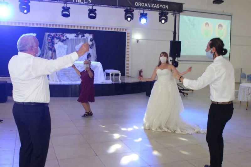 Yapılan temsili düğün merasimi girişinde davetlilerin ateşleri ölçülürken, düğün sahiplerine davetliler uzaktan selam verdi, ancak tokalaşmadı. Gelin ve damadın nikahının ardından sınırlı sayıda kişi sosyal mesafeye uyarak karşılıklı oynadı.