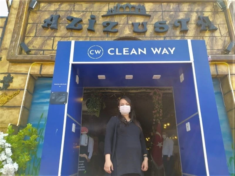 Bu işletmeye girerken boydan boya dezenfekte oluyorsunuz