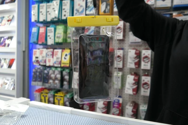 Yazın gelmesiyle tatil sezonunu giren vatandaşlar, denize girdiklerinde cep telefonu, cüzdan gibi özel eşyalarını basit bir su geçirmez kılıf ile yanlarında taşıyabiliyor. Su geçirmez kılıf sayesinde, plajda bırakılan özel eşyaların başına gelebilecek hırsızlık gibi olumsuzlukların önüne geçilirken, kullanıcı kılıfın şeffaf olması nedeniyle su altında fotoğraf ve video kaydı yapabiliyor. Tatil sezonun gelmesiyle su geçirmez kılıflara talebin arttığı belirtiliyor.