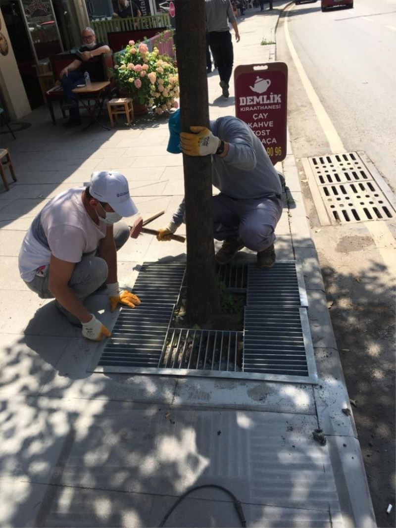 İzmit Zincirlikuyu Caddesi’nde engelli vatandaşların dar kaldırımda daha rahat geçiş yapabilmesi için ağaç tabanlarına ağaç dibi mazgalları yerleştirildi.
