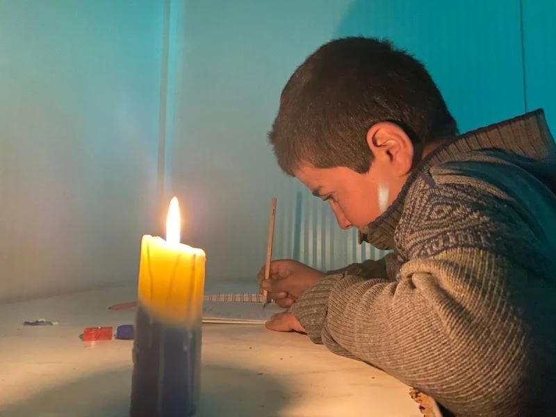 Şanlıurfa’nın Suruç ilçesinde iddiaya göre 8 yıldır elektriksiz olan mezrada öğrenciler ödevlerini mum ışığında yapmaya çalışıyor.
