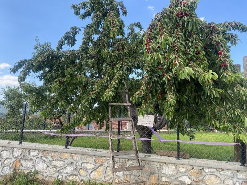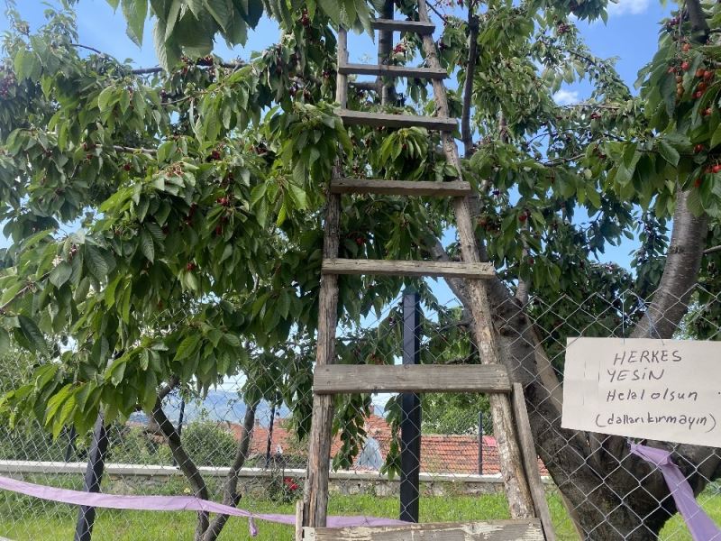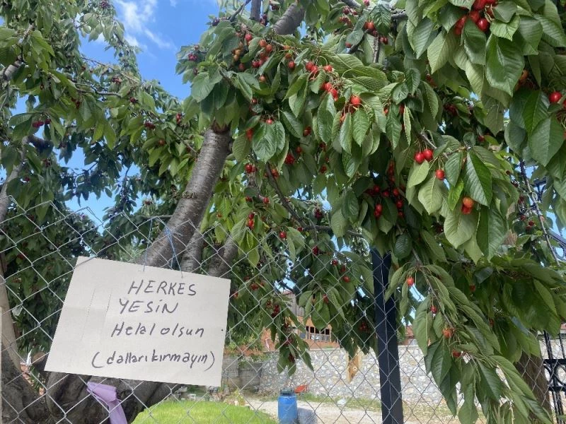 Bilecik’in Pazaryeri ilçesinde bir vatandaşın, bahçesindeki kiraz ağacının altına ‘Herkes yesin, helal olsun. Dallarını kırmayın’ yazılı not bırakması görenlerin hem şaşkınlığını, hem de takdirini kazandı.