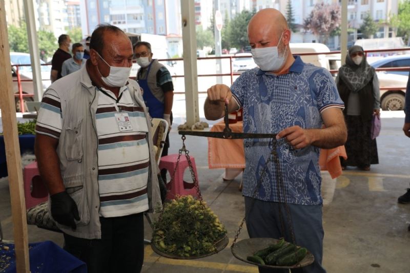 Sonrasında ise hem üreticiyle, hem de alışveriş yapan vatandaşlar ile yakından ilgilenen Kocasinan Belediye Başkanı Ahmet Çolakbayrakdar, vatandaşlara Kocasinan Belediyesi tarafından hazırlanan bez çanta hediye etti.