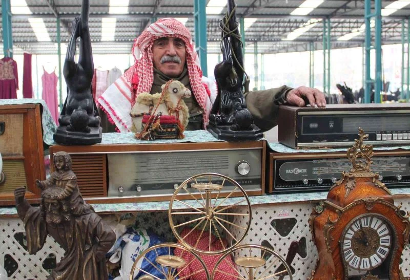 Başındaki poşusuyla 1983’ten beri bit pazarlarında antika eşya satan Sebahattin Değirmenci ise şunları söyledi: “1973 yılından beri pazarcıyım. Elimde deve çanından denizaltı dürbününe kadar pek çok antika eşya var. Her hafta çıkarım çıkmadığım hafta 4 veya 5’dir. O da çocuklar gelmiştir onlarla vakit geçirmek içindir. Pazarlarda iyi, Allah bereket versin. Maksadım halkımıza eskiyi yaşatmak para kazanmak değil. Bunlar ölmesin, eski göreneğimiz ölmesin bunun peşindeyim. Gençlere daha çok yardımcı oluyorum, gençler antikaya alışsın. Atamızdan kalan eserlere sahip çıkalım. Eski eşya getirenleri de mağdur etmiyorum, malın durumuna göre satın alıyorum vatandaşlarımıza da yardımcı oluyoruz.”