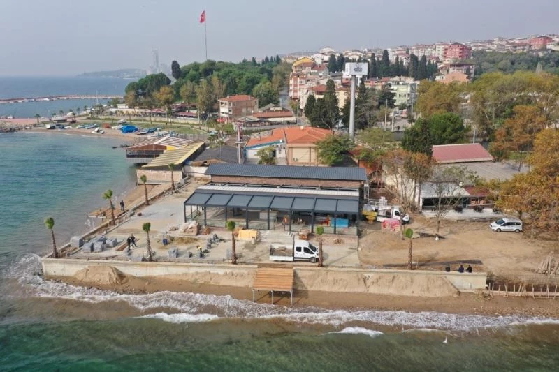 Kocaeli Büyükşehir Belediyesi tarafından yapımı tamamlanan Darıca Şehit Er Gökhan Hüseyinoğlu Sahil Parkı, mavi ile yeşilin muhteşem ahengini yansıtan alanları ile bölgenin cazibe merkezlerinden birisi oldu. Vatandaşlar için her şeyin düşünüldüğü sahil parkının, birinci etap girişinin karşındaki bina yıkılarak, Park ve Bahçeler Daire Başkanlığı tarafından yeni modern bir restorana dönüştürülüyor. Birçok imalatın tamamlandığı ve sert zemin bazalt taş yapımı çalışmasının sürdüğü restoran tamamlandığında, Darıca sahil parkının incisi olacak. Darıca sahil parkının prestijini arttıracak olan modern restoran binası, toplamda bin 790 metrekare alan üzerine kuruluyor. Kaba inşaat çalışmasından sonra birçok imalatın tamamlandığı restoranın 150 metrekare açık alanı, 450 metrekare ise kapalı oturma alanı bulunuyor. Sahile 100 metre kıyı şeridi bulunan restoranın, diğer kısımları yeşil alan olarak değerlendirilecek. Çalışma dahilinde yaklaşık 300 metrekare kenetli çatı yapımı, zemin ve duvar seramik imalatları, tente, iç mekan iklimlendirme, asma tavan, sıhhi tesisat ile su gider bağlantı yapımı tamamlandı. İş kapsamında şuan restoranın çevresindeki sert zemin imalatı ile çatı yağmur oluklarının montajı yapılıyor. Park ve Bahçeler Daire Başkanlığı ekipleri, tüm imalatlar bittikten sonra restoranın etrafından çevre düzenlemesi yaparak alanın yeşile bürünmesini sağlayacak.