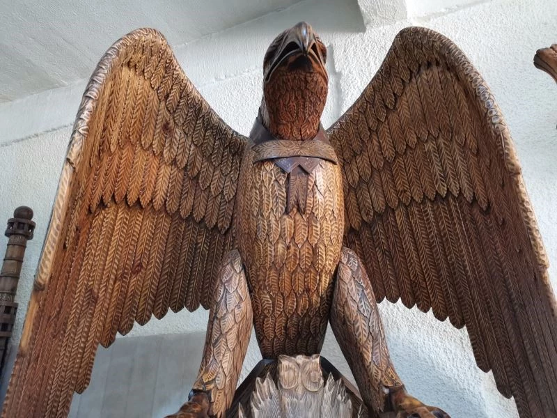 Kayseri’de 5 kişinin 7 ayda yaptığı 3.5 metre yüksekliğindeki, 1.5 ton ağırlığındaki kartal simgeli taht, görenleri kendine hayran bırakıyor.